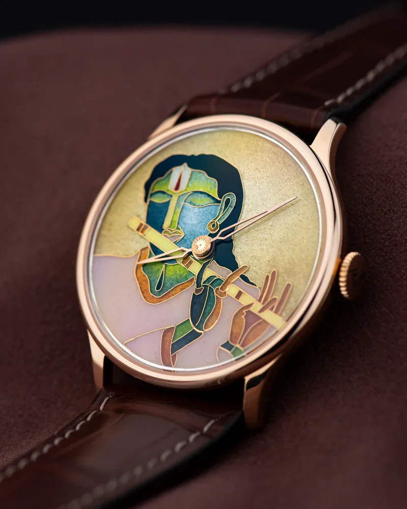 This serie of four timepieces marks a new chapter in our collaboration with Indian artist Thota Vaikuntam. Each watch is an official art adaptation, faithfully translating elements of his iconic paintings into cloisonné enamel. Presented in warm gold cases with matching hands, the pieces highlight the expressive lines, colors, and characters that define Vaikuntam’s world. As part of the Mirror Collection, this quartet pays tribute to his artistic legacy while offering a rare and intimate way to wear his work on the wrist.